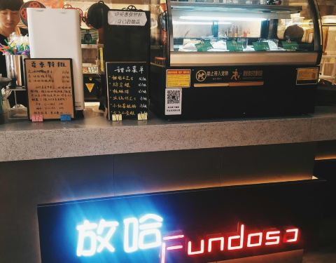 放哈咖啡西站店,据说这家饮品店在当地还是小有名气,碰巧经过排了一会儿队,点了一杯甜醅子奶茶和百利甜灰豆子拿铁,口感确实不错。
