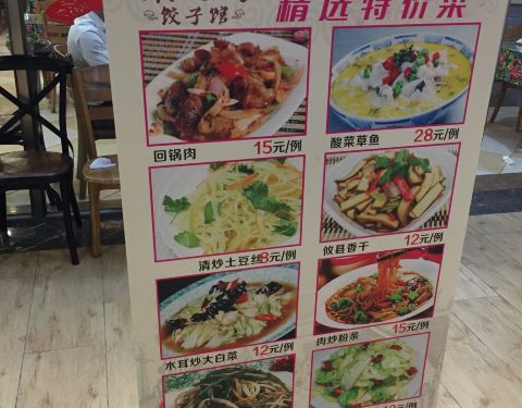 生意很好的店,服务员忙到不可开交,我进店坐下差不多10分钟才有人拿菜谱过来。他们很多菜都打特价,20元有15个饺子,15元一份回锅肉,另送小米粥和白饭,吃完捧着肚子离开。