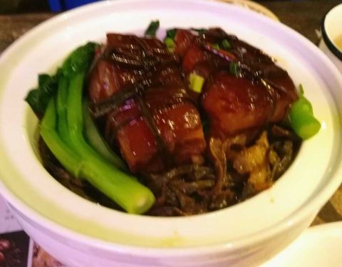 土猪肉汤和盐焗鸡不错,豆腐也行,其他无惊喜。店内光线稍喑,走农家怀旧风为主调,大台不多