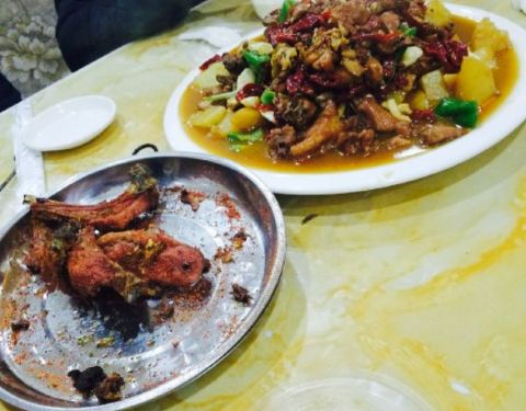 轮台已经属于南疆了。在轮台的第一顿晚餐。找到了这家店,可是是汉人开的,来的也基本都是汉人。有游客,也有当地人,来的时候还等位等了一会。现场看了烤制过程。大红腰很鲜美,是一路上吃到的烤制火候最接近济南烧烤的。肥油入口即化,略有骚味,但骚的刚刚好。羊排烤的略轻,不算焦,如果喜欢火大的,可以提前说。酸奶没怪味,但还是加了砂糖更美味。汤面和馕的味道和其它店无明显差别。吃起来总的来说还是蛮爽的。