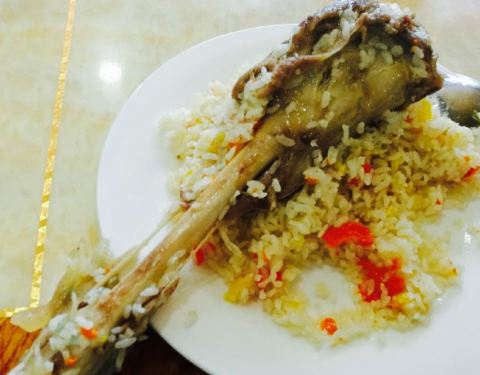 在合盛元对面,自助小菜,环境也不错。下次想试试羊排,这羊腿最贵,虽然看上去很不错,不过肉不是那么多。我们去的时候人不是很多。抓饭一天就一大锅。味道还是可以的。貌似还有烧烤,晚上主营烤肉,很红火。附近是体彩,吃完了可以顺便去碰碰运气。