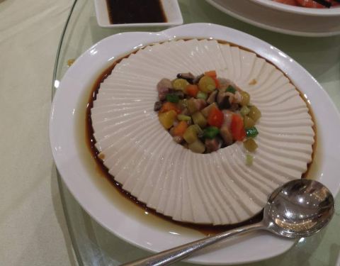 亲戚请我们来这里吃饭,原来这里是他们的饭堂,但我们只是第一次来。提醒一下各位,要坐观光电梯上去,不要坐扶手电梯,否则要在三楼转观光梯才能到。步入大门,即感受到高大上的氛围,环境确实是没得说的,一个阔大的玻璃窗可以看到珠江新城的景色。 出品也是相当好,虽然份量有点少,但每一道菜都很精致,观感十足。我特别喜欢那个把豆腐切成一片一片围成一个圈的那道菜(请原谅我忘记了菜名),豆腐滑得像豆腐花一样,口感满分。除此之外,鱼和虾都很新鲜,牛肉很嫩滑,叉烧包也相当不错(连我这个不喜欢吃叉烧包的人也吃了半个),几乎每一道菜都非常好吃,连我们家那位出名挑剔的人也赞口不绝。 结账的价钱也不算贵,和这里的档次和出品相比,性价比挺高!