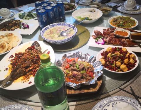 原本以为自驾晚到酒店了没有什么好地方吃饭呢……谁知道前台推荐这家狮子楼,很多人在用餐,选择比较多……打火锅的人更多,我们点了几个菜,铁板牛肉不错。