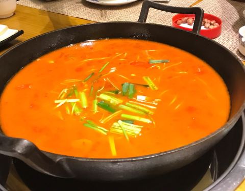 第一次到贵州,第一顿就选择了酒店旁边的酸汤鱼火锅,四个人要了一条三斤的江团鱼,肉质鲜美,汤味酸爽,直到回来写点评都觉得口齿生津,实在惊艳!不过服务员普通话沟通不太灵光,要了一份当地野菜,吃完了也不知道叫啥名字。整个兴义给人感觉,空气清新、街道非常干净,还有好吃的美味,感觉这个端午假期选对了地方!