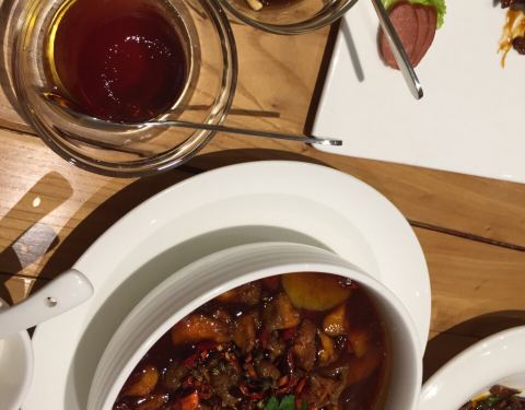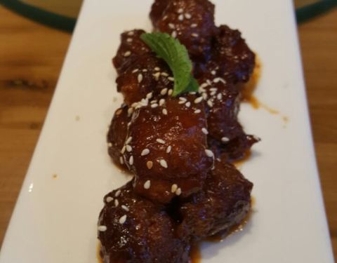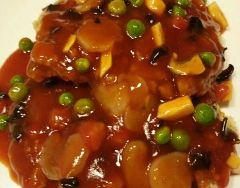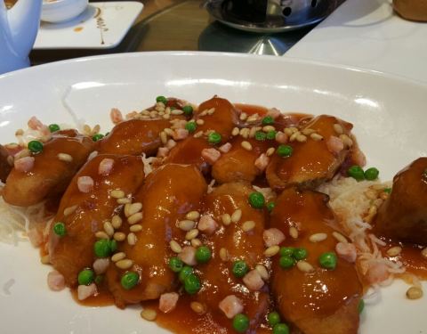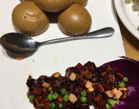 - ...还是真能把素的吃出荤菜的感觉来了,糖醋排骨里面的骨头是藕做的外面大概是豆制品做的,酸甜适中好吃