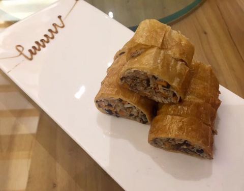 就在酒店旁边,晚饭在这里解决。价格吃出了海鲜的价格,但是味道实在不怎么样。海陆炒饭,过硬,一冷就有一层浮油。冷菜点了两个,八珍大拌,有点辣,口味略重。蔬菜手卷,28元一个,价格太惊艳了,芥辣一点点,...就在酒店旁边,晚饭在这里解决。价格吃出了海鲜的价格,但是味道实在不怎么样。海陆炒饭,过硬,一冷就有一层浮油。冷菜点了两个,八珍大拌,有点辣,口味略重。蔬菜手卷,28元一个,价格太惊艳了,芥辣一点点,味道还行。八宝辣酱配上窝窝头还可以,但是单吃太咸了。沙嗲烤串,一样的问题,太咸了。食素不仅是信仰的问题,还有健康的考量,过油过咸实在不推荐。