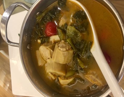 就在酒店旁边,晚饭在这里解决。价格吃出了海鲜的价格,但是味道实在不怎么样。海陆炒饭,过硬,一冷就有一层浮油。冷菜点了两个,八珍大拌,有点辣,口味略重。蔬菜手卷,28元一个,价格太惊艳了,芥辣一点点,味道还行。八宝辣酱配上窝窝头还可以,但是单吃太咸了。沙嗲烤串,一样的问题,太咸了。食素不仅是信仰的问题,还有健康的考量,过油过咸实在不推荐。
