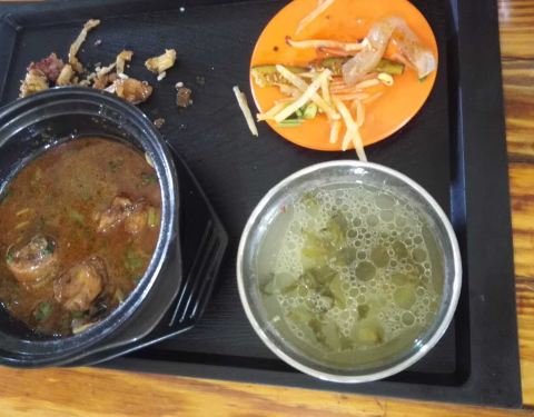黄焖鸡套饭还不错 - 这个店的环境在校门口算是很好的了,一般在中午和饭点儿的时候人都是爆满的。今天尝一下肉末蛋花粥