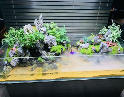 养着好多颜色鲜艳的金鱼,游来游去,很灵动噢~ 被安排在靠窗沙发坐位置,可以边吃边看窗外景致,虽...