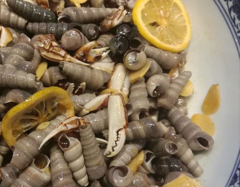 到刘家湾赶海园游玩,就近在这家食香渔家海鲜餐馆吃饭,店内就餐环境比较干净,菜品丰富,主要是各种海鲜,蒜蓉粉丝扇贝、辣炒花蛤做的挺好吃的,现挖的嘎啦做个海鲜疙瘩汤,吃着各外香。