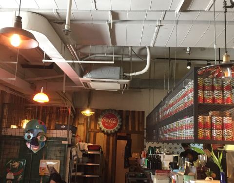 开在一个老的工业区,已经弃用了,主打老香港的怀旧感觉,菜的价格都不贵,有吐司面包,这个是老香港的情怀,那个鸡排饭挺好吃的,就是没有配菜。