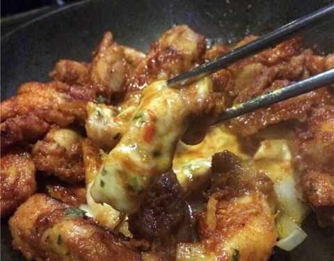 和老马去展览中心看展会,顺便到高岛屋打卡了这家评价超高的韩料店。冲着墨鱼参鸡汤去的,想不到盲点的其他菜 品也都很好吃。 点餐前,服务员送上免费的瓶装矿泉水和湿纸巾,让我对这家店好感度倍增。他们家甚至还有漱口水、棉签提供哦, 可以说是非常贴心了。 饥肠辘辘地等待十几二十分钟后,点的几个菜一股脑儿全部上桌。 墨汁参鸡汤 128元 生墨鱼单独装盘,由服务员现场剪成小段,放进锅中。煮5分钟左右就可以吃啦。墨鱼Q弹,鸡肉煮酥了,一碰就散 开,就连鸡胸的部分也很入味。大颗红枣也给鸡汤提鲜了不少。冬天喝应该及暖和又滋补。 马苏里拉石锅泡菜饭 78元 米饭和酱汁充分融合,还有小块泡菜均匀分布。用大勺舀起一勺,表层的马苏里拉芝士还会拉丝~微酸、微辣,还有 脆脆的口感,十分过瘾。时不时还能吃到小块培根肉哟~ 甜辣干烹鸡 68元 想不到,端上来的也是一个热腾腾的小炉子。无骨的小块鸡肉,酸酸甜甜,一点也不柴。 查了下,南京西路也有分店~有机会去试试。