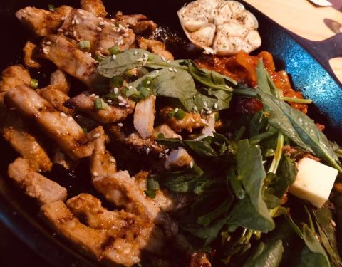 第一次在南京西路那里吃的,印象非常地好。做韩国创意料理,感觉就是加入了很多的奶油元素,烤肉也不错,今天赶时间点了两个主食126元一共,量很大,但是鸡蛋五花肉饭没我想象中好吃,五花肉有点冷了,饭也不是很入味,还有个豆腐海鲜锅我老公挺喜欢的,我比较一般,看来他家还是奶油类比较给力,下次再来试试。这里的水是瓶装的,加了印象分,服务很好。每次点好以后就鞠躬,牛奶雪花冰点了,来不及吃,退了