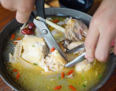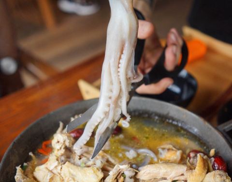 微酸、微辣,还有 脆脆的口感,十分过瘾。墨鱼Q弹,鸡肉煮酥了,一碰就散 开,就连鸡胸的部分也很入味
