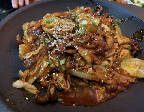 坐标高岛屋二楼,地铁10号线可达。 工作日的中午生意依然不错,「倍乐豆腐色拉」「韩式辣酱八爪鱼五花肉」基本点的菜没有踩雷的。 强推「墨汁参鸡汤」,上桌时章鱼还是活的,服务生会询问是否要墨汁,再稍稍煮3-5分钟就可以食用了,超级鲜嫩,比在韩国喝过的很多参鸡汤都好喝[色]