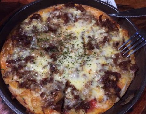 这家的口味挺新潮的,一直比较喜欢, 豆腐色拉 这个色拉除了新鲜蔬菜还有那一颗颗很特别的豆腐,咋看以为是芝士来,口感及其绵酥,和着上面淋的酱料一起吃,很嗲额。 韩式肥牛披萨 薄底的披萨脆脆香香好好吃,...