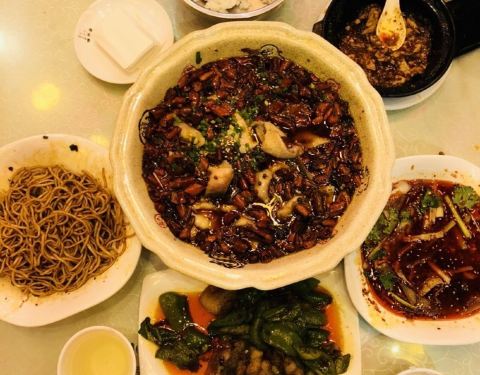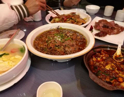 陈麻婆豆腐,还好十二点一过就到店了,排了十分钟就排到了我们。点的都是推荐菜,陈麻婆豆腐,鸡丝凉面,回锅肉,夫妻肺片,水煮鱼,豆腐真的真的real好吃,北方人吃鸡丝凉面味道不是那么的对口,其他菜品谈不上豆腐那么经典,但是成都的川菜再一般也是美味了。五星推荐。