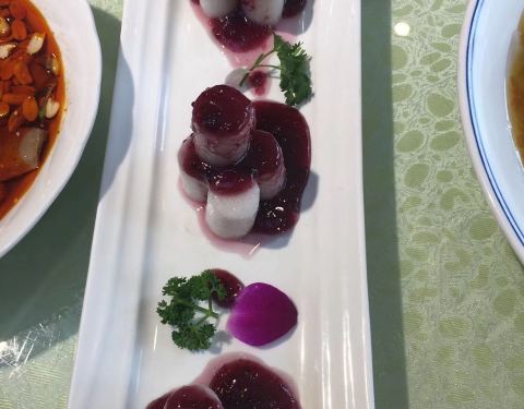 【蒸蛋】的口感像果冻。48元一份,我们含泪忍痛吃了将近一半,最后实在没法,浪费了30元。苦荞都这么贵