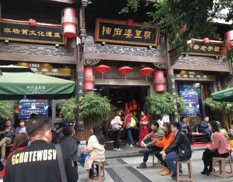 - 天府之国四川省成都市的陈麻婆豆腐店,创始于一八六二年,在中华老字号,世界有名的川菜品牌
