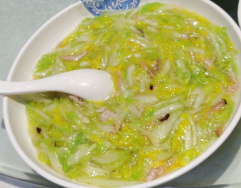 还有一道特别考验刀功的煮干丝也是我个人比较喜欢吃的,干丝切的丝丝分明,笋丝,火腿丝,高汤喂出来...