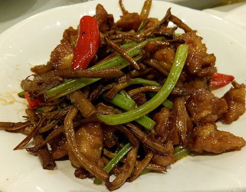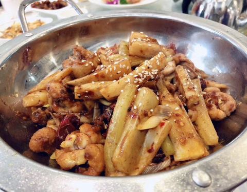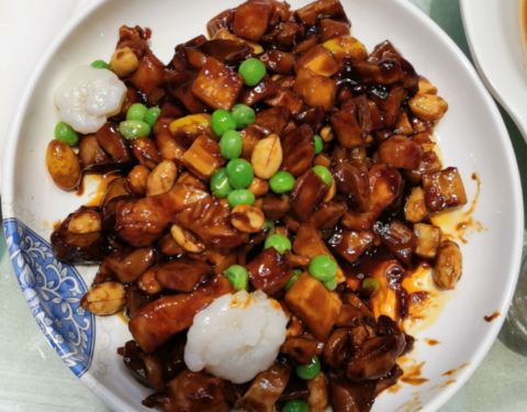 - ...,香脆的花生米,清脆的鲜笋,还有鸡胗,肉丝等等,口味略偏甜,非常好吃,如果下饭吃绝对是要加饭的