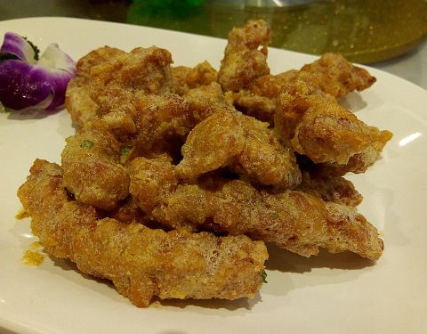 酥脆的排条夹杂着咸蛋黄的味道,真的是香甜可口,回味无穷!