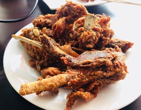 ...很純正,是單要羊雜,然後煮湯,配上苞米面大餅子超級好吃,炸羊排是他家主打菜,嫩兒不膩,香脆可口
