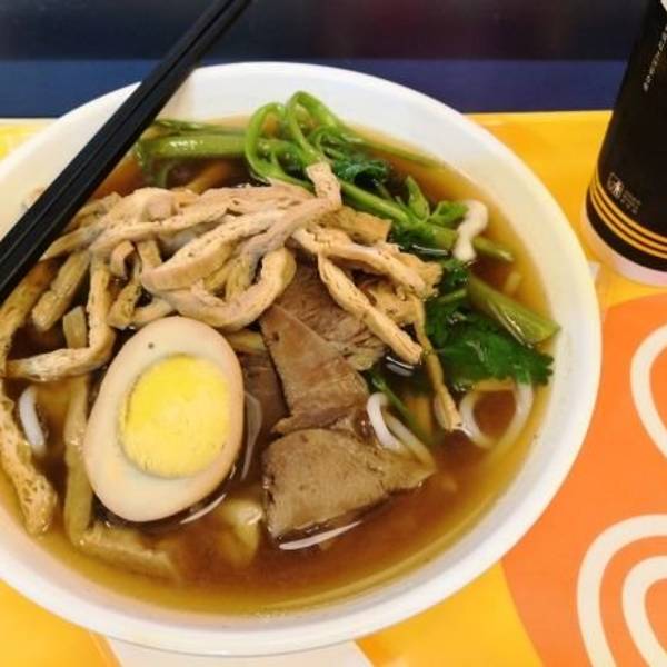 好像昏昏欲睡时的一道清凉,好像茫茫黄土地上一颗凸起的白杨,咳咳,其实我说的是汤粉里面的酸菜~够爽够酸够脆!当然还有汤,那是必须喝完的,还有肉,带筋的不带的,都咸香可口。还有鸡蛋,火候既不是老的发黑绿,味道也不是淡的没滋味,茶蛋的味道刚刚好。更令我满足的是,套餐里的饮料选择竟然有豆浆!在这略有些些热的天气里,在刚刚喝完地道的汤粉后,来上一杯凉凉的豆浆,一天的满足感,齐了!