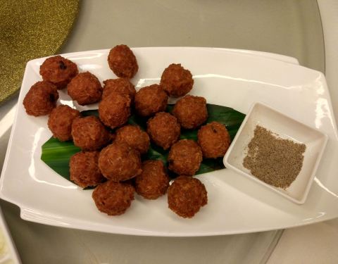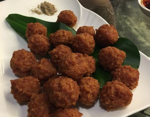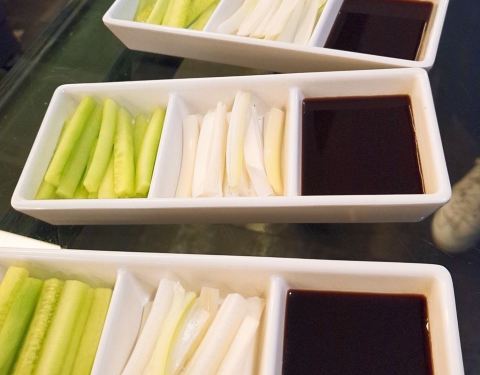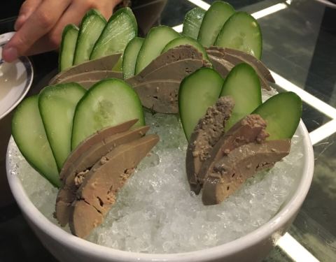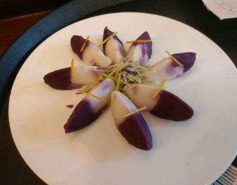 但现烤现片的非常好吃,尤其是鸭胸那部分的酥皮,酥嫩可口,蘸点糖,完美! 紫薯山药泥,健康又美味的前菜