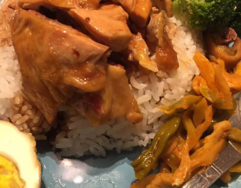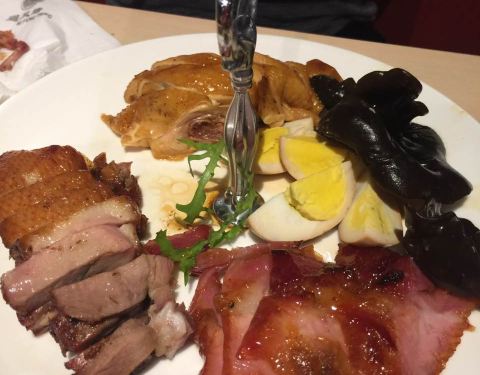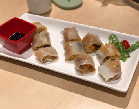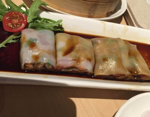 粥,肠粉这些都可以,烧鹅量不大,肉有点老,娃娃菜倒是一大盆,底下有粉丝,还不错吧!