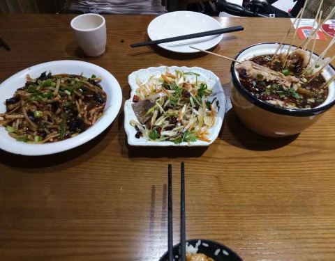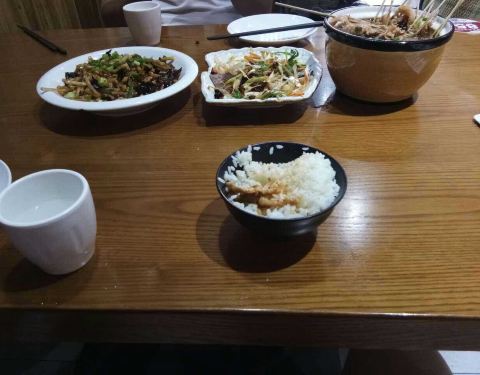 该餐馆饭菜整体味道不错,土豆丝切的比较细,毛血旺味道较纯正。第一次去吃了之后,比较满意,进门的那个地方还有免费的零食可以吃,那个零食是在超市里买到的那种猫耳朵、妙脆角之类的,后来请朋友吃饭都去那个...