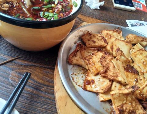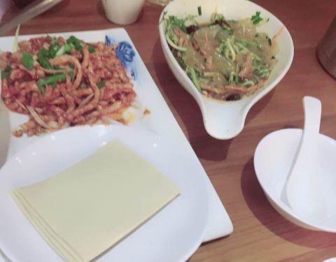 跳水蛙一般,土豆丝、涮肚、千页豆腐都很好吃。