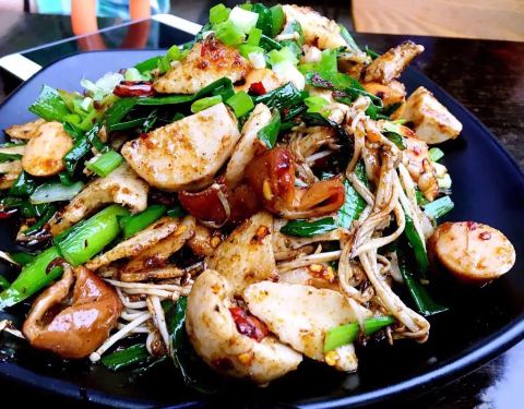 - 他们家主要就是烤肉,荤菜的种类也比素菜多些。 推荐:烧烤虾仁,烧烤鱿鱼拌饭,鳗鱼炒饭