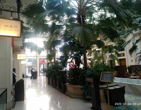 酒店在建国门外大街的边上,四季厅在大堂一楼,是一般客人吃早餐的地方。平时人不多。早餐还算比较丰盛。大堂里植物太多,有点华丽过头。