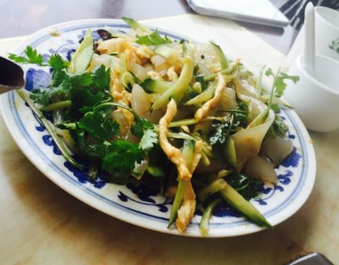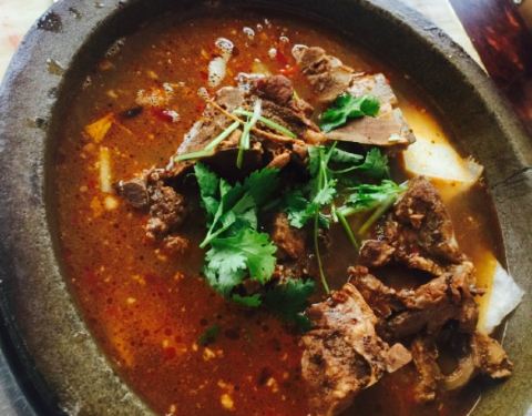 附近比较大的一家店,标牌很醒目,觉得不错。饭点人倒不多,坐在外围。点了拉皮,莜面窝窝还有羊石锅。凉菜味道不错,很可口。莜面窝窝之前没吃过,很神奇,有两种味道,一种是菌菇,一种是番茄鸡蛋的。蘸一下味道很重的,很有味儿,可以当主食。最重点的菜其实并不入味,汤的味道觉得是用方便面的调料包调制的,并不好喝。肉是清新的,但是太少了。里面有冬瓜,豆腐作为配菜。