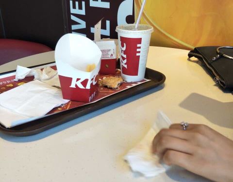 - ...一次见到这样的肯德基餐厅,以前在火车站机场的肯德基都不会遇见这种情况,还没吃东西,胃口就没有了