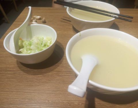 豆腐汤是现做的,太难喝了,都是水,难喝!!!!!!!!!!!!!太淡了,还得自己加东西!!!!!!!!
