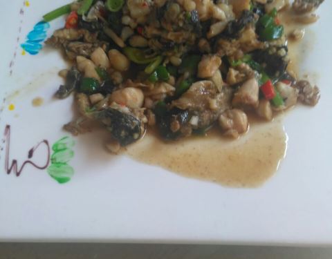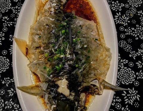 这家店是在武夷山游玩时吃过的最满意的饭店了,是一起乘坐九曲溪竹筏漂流的游客介绍给我们的。 那天在大众点评网上搜索这家店时发现竟然是歇业状态,明明是开业的啊。 开车过去很方便,门口停车场可以停十几辆车。这家店装修的很有农家乐的味道,里面是用竹子搭建的,还有一个大水车。 九曲红眼鱼是称斤卖的,58元一斤,要了条小的,1斤4两,清蒸的做法,鱼鳞是不刮的。鱼肉很嫩,味道很鲜美。 红烧肉,可能是爬武夷山累了,看见红烧肉特别有食欲,一盘浓油赤酱的红烧肉,煮的很入味很香,肥瘦相间,瘦肉不少。 当地特产子孙菜,辣椒放多了,好辣,子孙菜味道有点像西葫芦。 点了手工甩饼当主食,有点像印度飞饼,很香很脆。 两个人吃的很撑,很满足的一餐。