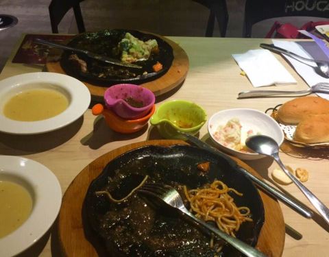 豪客来,几乎是最早的牛排连锁品牌,开了有20年了吧。服务也不错。性价比还真是挺高。店里位置多,挺宽敞
