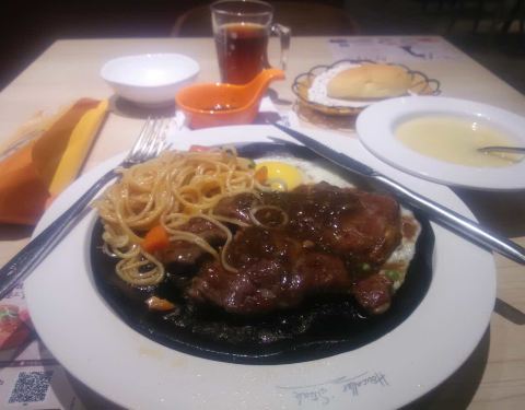 豪客来,几乎是最早的牛排连锁品牌,开了有20年了吧。以前觉得它很高端,在餐饮界蓬勃发展的现在,反倒觉得它越来越平价和亲民了。 这家位于夏商钟楼生活广场。店里位置多,挺宽敞。服务也不错。 自助沙拉台种类...豪客来,几乎是最早的牛排连锁品牌,开了有20年了吧。以前觉得它很高端,在餐饮界蓬勃发展的现在,反倒觉得它越来越平价和亲民了。 这家位于夏商钟楼生活广场。店里位置多,挺宽敞。服务也不错。 自助沙拉台种类不少,也算新鲜。 双人牛排套餐,有两份牛排,玉米浓汤、餐包,美国酸奶薯条,还有一杯西米奶茶。性价比还真是挺高。
