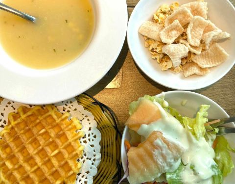 口感非常好,分量也够足,里面的瓦格饼非常好吃,还有玉米汤都超级好喝,点的两人餐,我跟儿子都吃充了,餐后水果也是够新鲜,不错不错值得推荐