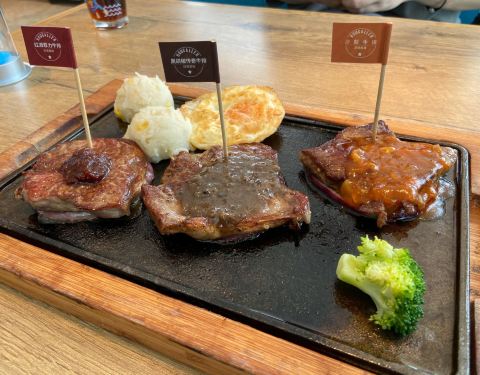 ...,三瓶的牛排可太赞了,一次性就可以吃到三种口味,然后它家的小食也是我比较喜欢的,每次过去都会点