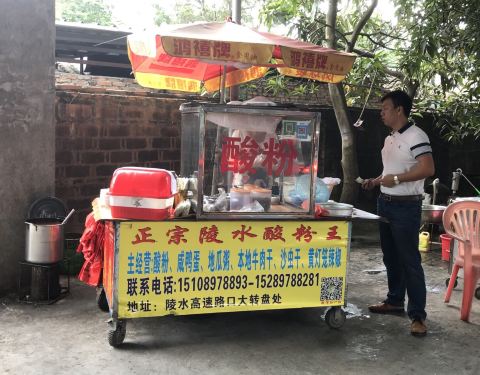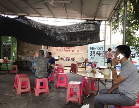蛮好吃的。 好特别的陵水酸粉。进入园地就看到好多车子停在里面。来到一间民居,门口摆了一个摊位卖酸粉