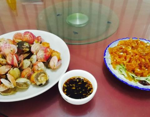 - 辣炒蛤蜊味道欠缺,没有好吃。商家服务态度非常好。住的条件还不错,对比其它家。菜的话海鲜比较贵