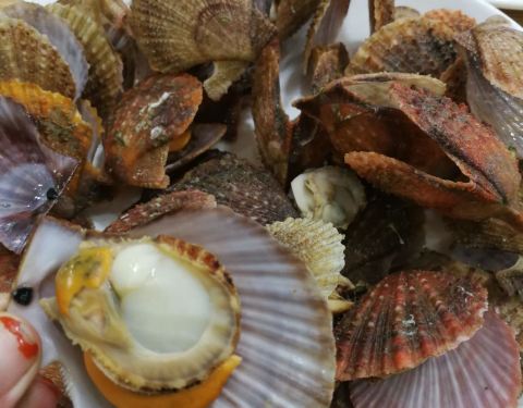 ...基围虾,扇贝,蛏子,蛤蜊最美味,我们还点了一份茄子,葱花饼和鲅鱼饺子,鲅鱼饺子和葱花饼非常爽口