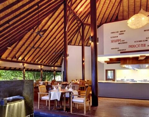 鲁滨逊岛上的埃德尔特色餐厅(Das Edel)位于靠近水上别墅一侧的沙滩旁边,是岛上一个令人惊叹的用餐地点。轻松优雅的就餐环境,再配上大螯虾或者神户的优质牛肉和顶尖的葡萄酒,绝对是一次独一无二的美食之旅。同时这里还提供美味多汁的海鲜类菜品,并且融入了马尔代夫当地的美食,也是埃德尔特色餐厅里的一大亮点。