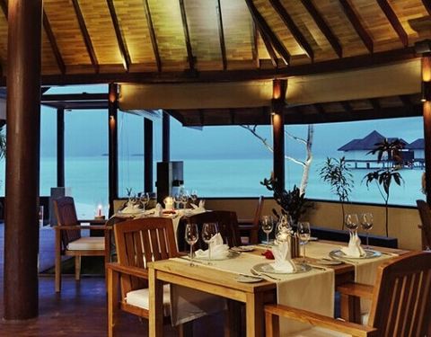 在埃德尔特色餐厅用餐,真的是一次愉快而又浪漫的经历,这个餐厅位于水上别墅一侧的沙滩上,来这里用餐除了可以享受美食还可以欣赏周围景色。