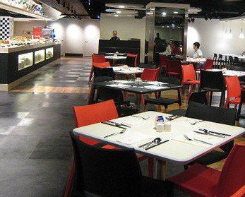 有別於其他五星級飯店的自助餐擁擠感,这里的空間顯得格外寬敞,色系用了黑、白、紅這三種比較現代又...