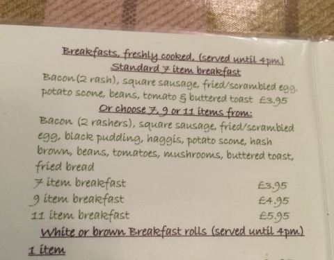 The 7, 9 or 11 item breakfast choice is compelling. Friendly, cheap and hence popular. Recommended.