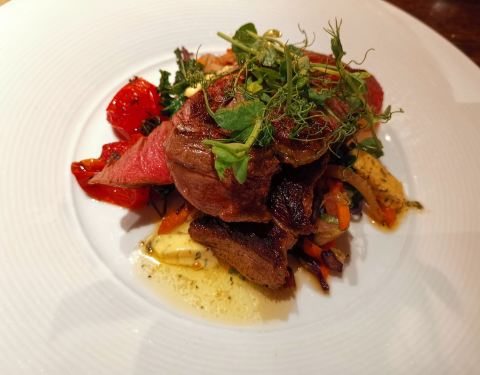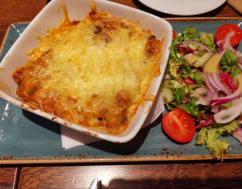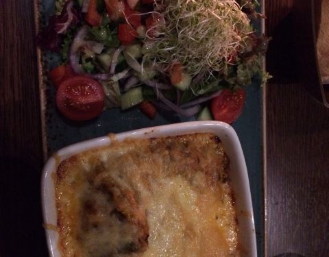 Vegetarian lasagna was huge and very tasty! There 3 vegetarian choices - salad, burger and lasagna. It’s rather expensive. Very nice and cozy place.